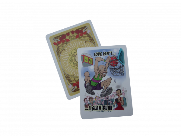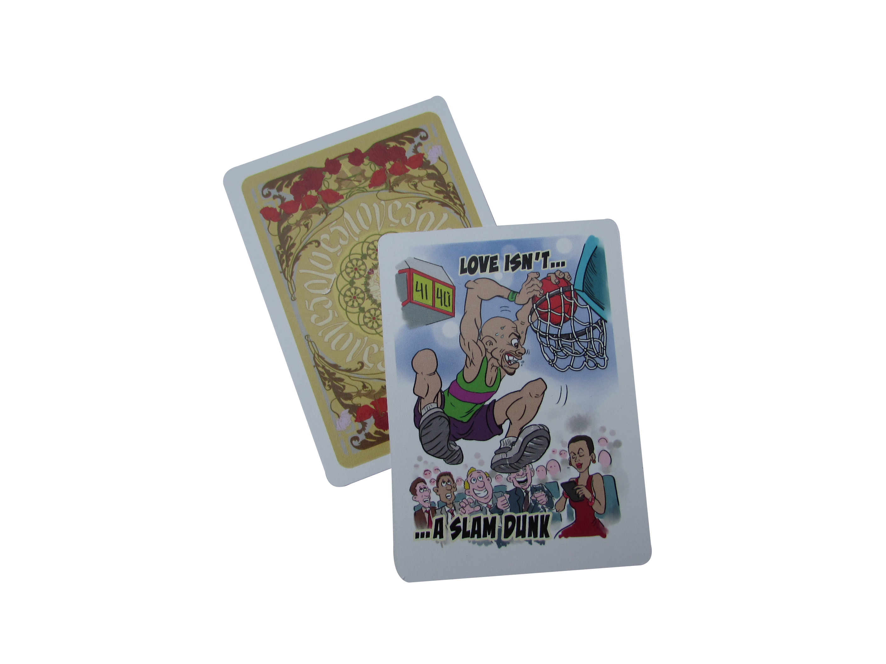 The deck is a collection of 52 humorous and/or poignant cartoon images with a secret hidden riddle.